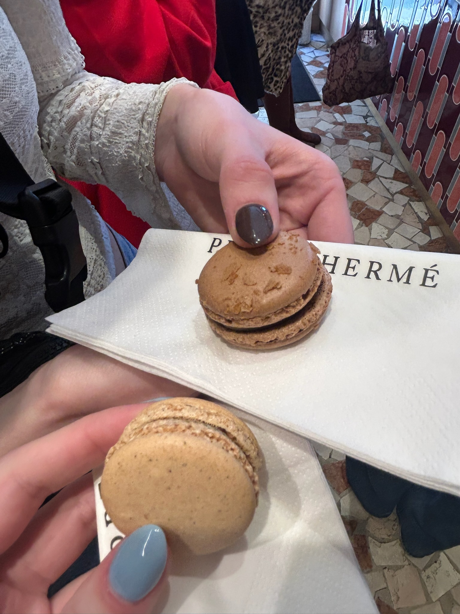 all the different macroon flavorsOlivia chose the chocolate macroon and I chose the vanilla.