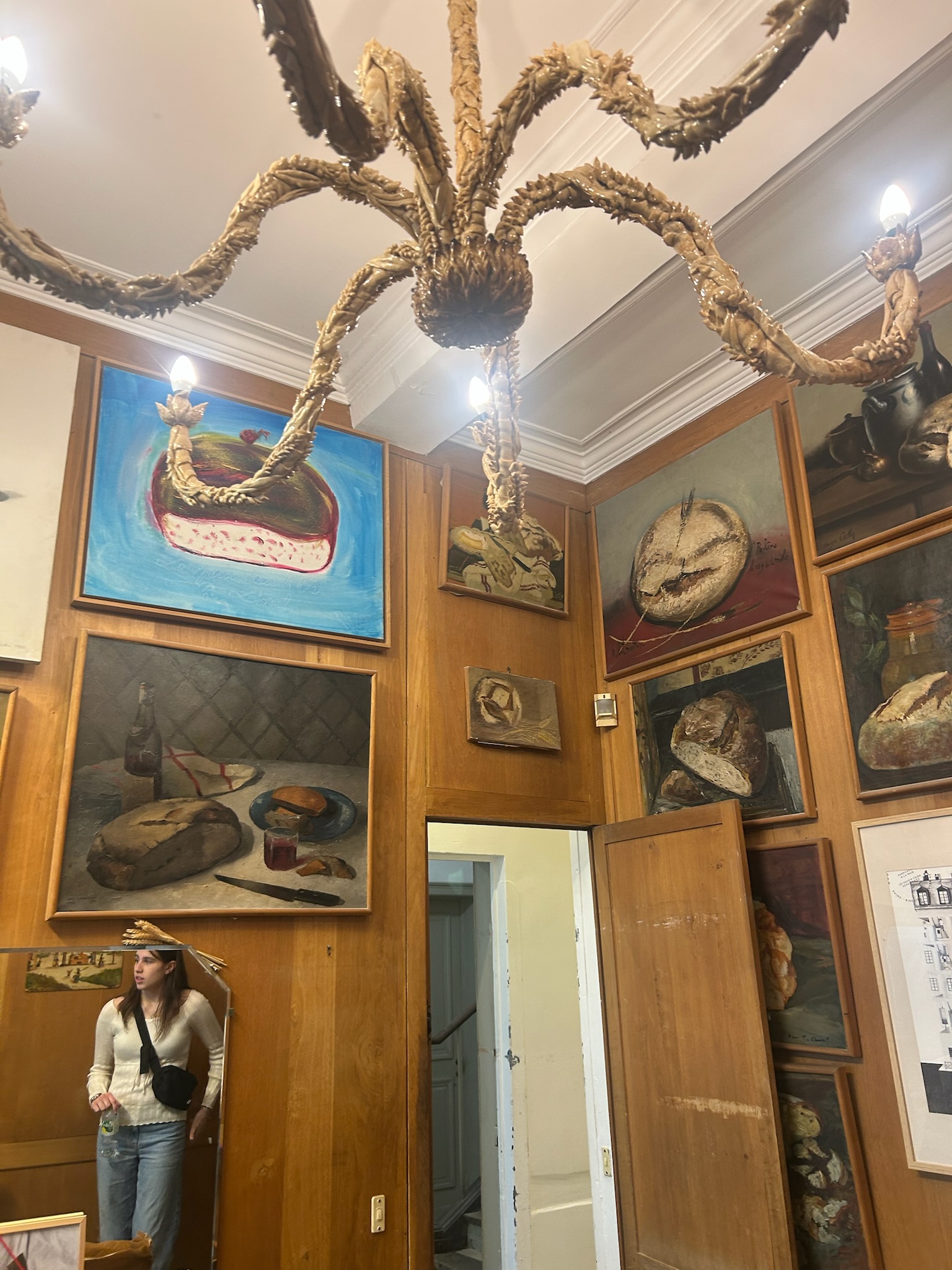 We then visited a beautiful bread shop that immediately caught everyone’s attention. Fresh loaves lined the walls, and hanging above us was a spectacular chandelier made entirely out of bread. It was both creative and impressive, and it definitely made me excited for the food still to come