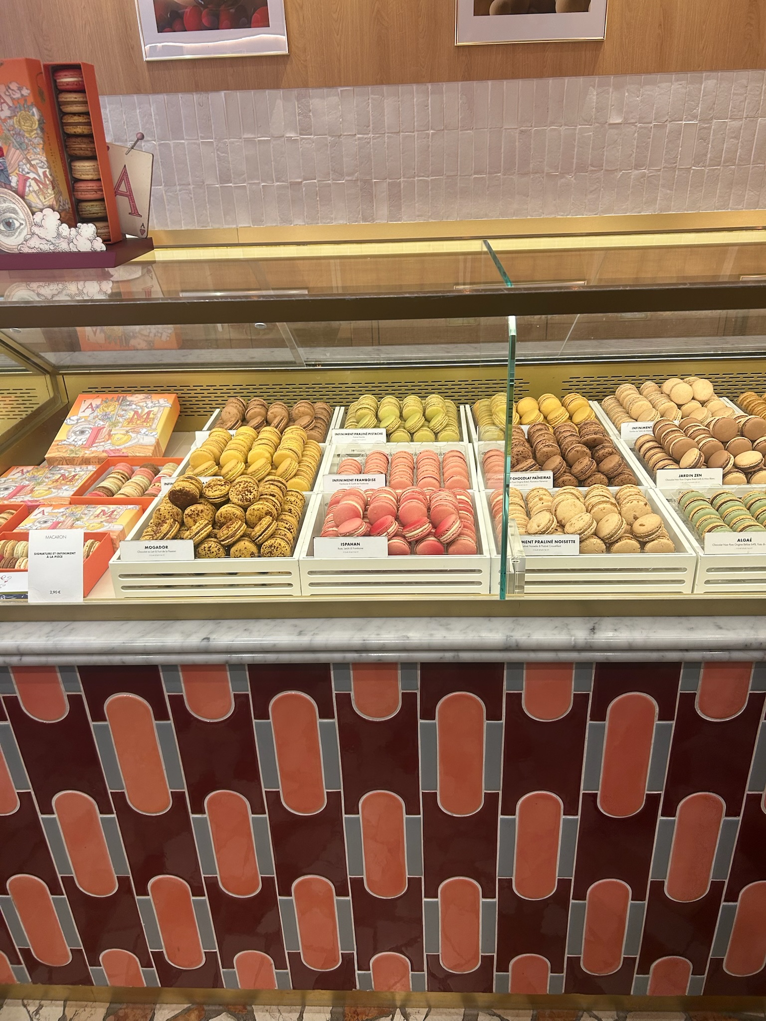 Our next stop was the famous Pierre Hermé, known for its incredible macarons. Macarons are delicate almond-based pastries that come in a wide variety of flavors. I chose the Ispahan macaron, which combines rose, lychee, and raspberry. The flavor combination was unique and absolutely delicious. Pierre Hermé also offers seasonal macaron flavors, which makes every visit a little different.