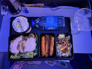 The flight itself went smoothly. The airline served meals, beverages, and snacks throughout the trip, and many people took the opportunity to sleep and prepare for the time change ahead.