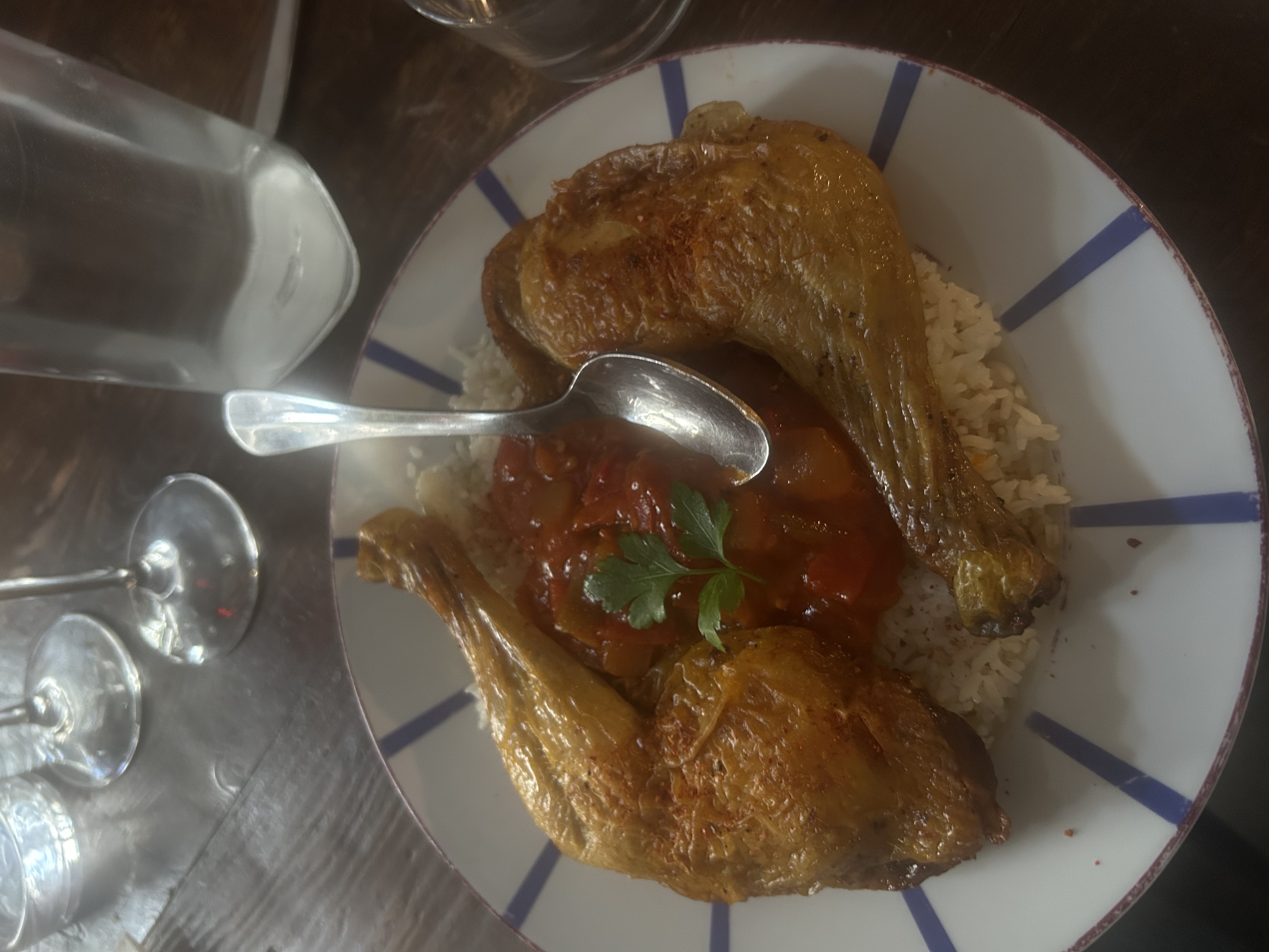 After the Bakery, we stopped at a cheese shop and a bread shop to bring with us to dinner. Here, Olivia served us first with sparkling wine, which we would call champagne, but in France, it is only called champagne when it is made in and with the grapes grown from the Champagne region. I thought it was delicious! This was served with Foie gras and bread. Foie gras is duck liver, and this was served with bread. I was not a huge fan of the texture. Next, we were served with cheese, which was delicious and amazing with the bread. After that, we had a dish served with several pork dishes, which mostly reminded me of pepperoni, and they all paired well with the red wine that was served. After that, we were able to choose between 3 dishes for dinner. There was veal stew, chicken and rice, and stuffed peppers. I chose the chicken and rice, which was absolutely amazing. The chicken was super moist and had a salty kick to it. Then, for dessert, Olivia brought a cake that she had brought from Pierre Bakery, which was where we stopped for macarons.
