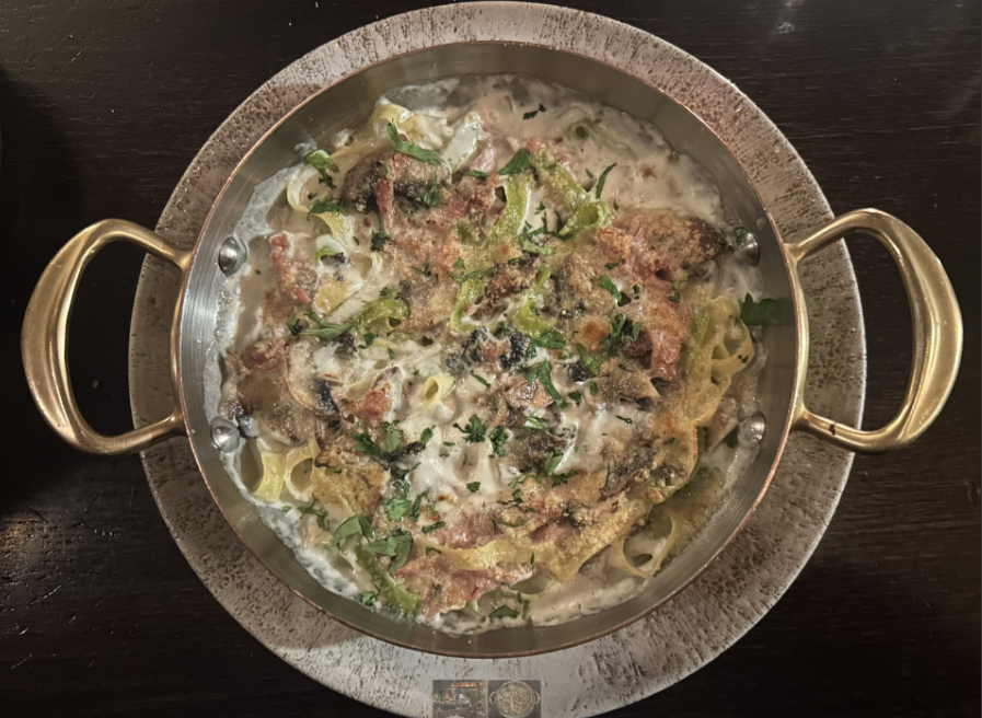 Speaking of the Moulin Rouge, after the lunch was finished, we cleaned up and then a few of my friends and I headed back to the hotel to have some rest then went to the Moulin Rouge. I had to immediately head back and get ready because I was heading to a restaurant called Bartolino in the 6th district of Paris with Lilah, Julia, Emma, Olivia, and Jessie before the Moulin Rouge. There I got a delicious pasta dish with yellow egg pasta, spinach noodles, mushrooms, and a rich parmesan sauce as shown below. It is commonly referred to as “Paglia e Fieno” which means “straw and hay.” The yellow noodles represent the straw, and the green pasta represents the hay.