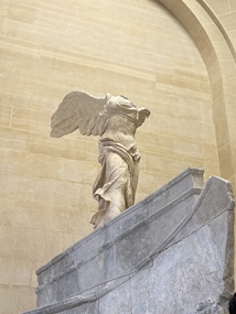 Next, we made our way to the Mona Lisa. The crowd to view the painting was unbelieveable, it filled up half the room! In order to get a view of the painting, we had to push and shove our way to the front. Da Vinci is most famous for sfumato, which is a painting technique that transitions between colors seamlessly. The painting itself was quite small, but even from afar the sfumato shines through.