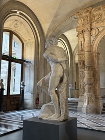 Our first stop was of Michelangelo’s Slave series. One of the statues from this series is shown below, known as ‘The Rebellious Slave’. The figure looks as if it is struggling to break free from its marble encasement. As Professor Cadero-Gillette explained, Michelangelo believed that the figure was already ‘alive’ beneath the stone; his job was to chisel away the stone to reveal the figure that lies within.