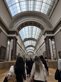 To start off our third day in Paris, we spent our morning at the Louvre! Despite it being a Wednesday (and rainy!), lines were already stretching outside the entrance. We waited outside in the rain for about 30 minutes until we were finally able to come inside and meet with Professor Cadero-Gillette.